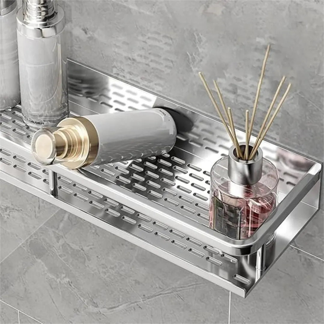 A Prateleira Fixa para Banheiro em Alumínio - Tazzi é ideal para organizar itens como shampoos, cremes e outros acessórios de forma prática e elegante. Fabricada em alumínio resistente, ela se adapta perfeitamente a qualquer decoração de banheiro, oferecendo uma solução durável e refinada.