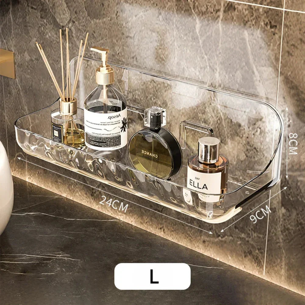 Organize seus itens de banheiro com estilo e praticidade usando a Prateleira Transparente para Banheiro Sem Furos Tazzi. Feita de acrílico durável, ela dispensa furos na instalação, preservando suas paredes e proporcionando um visual moderno e sofisticado ao ambiente.