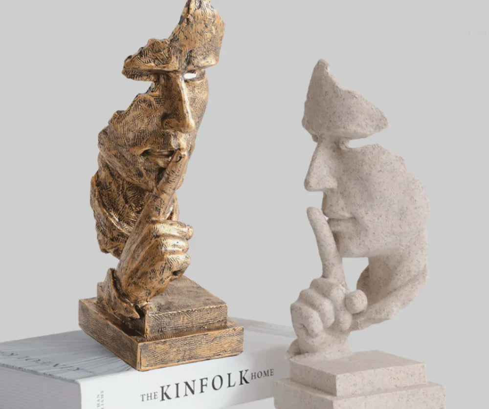 Adicione a Escultura "Silêncio Vale Ouro" - Tazzi à sua decoração e traga mais arte, cultura e sofisticação ao seu ambiente!