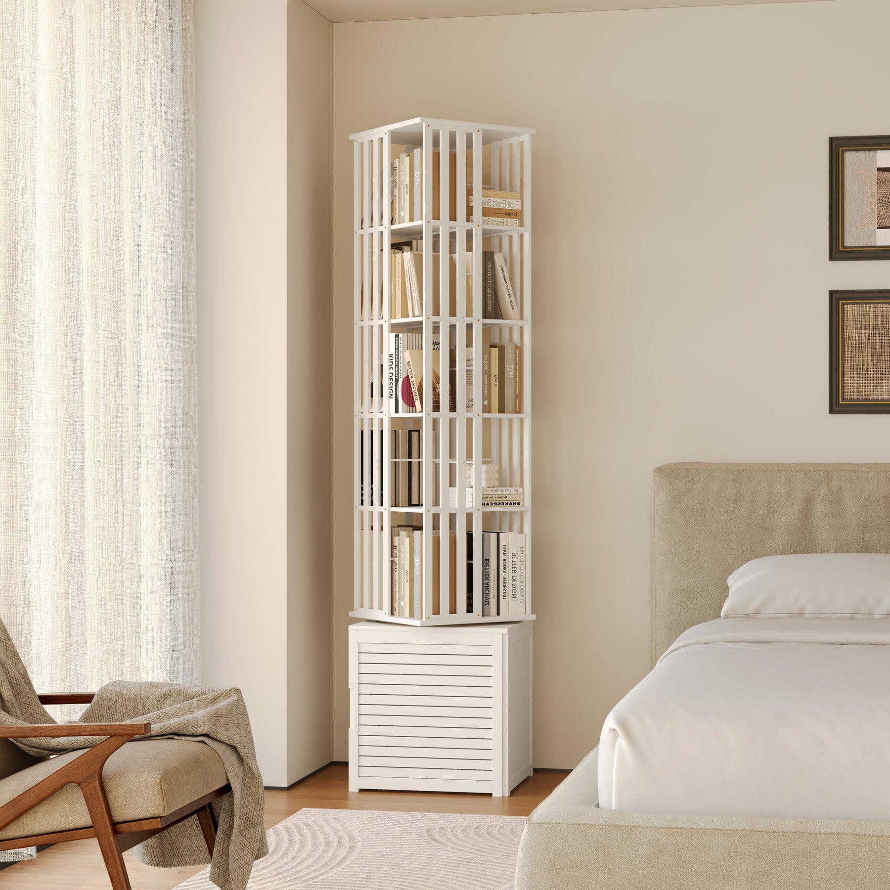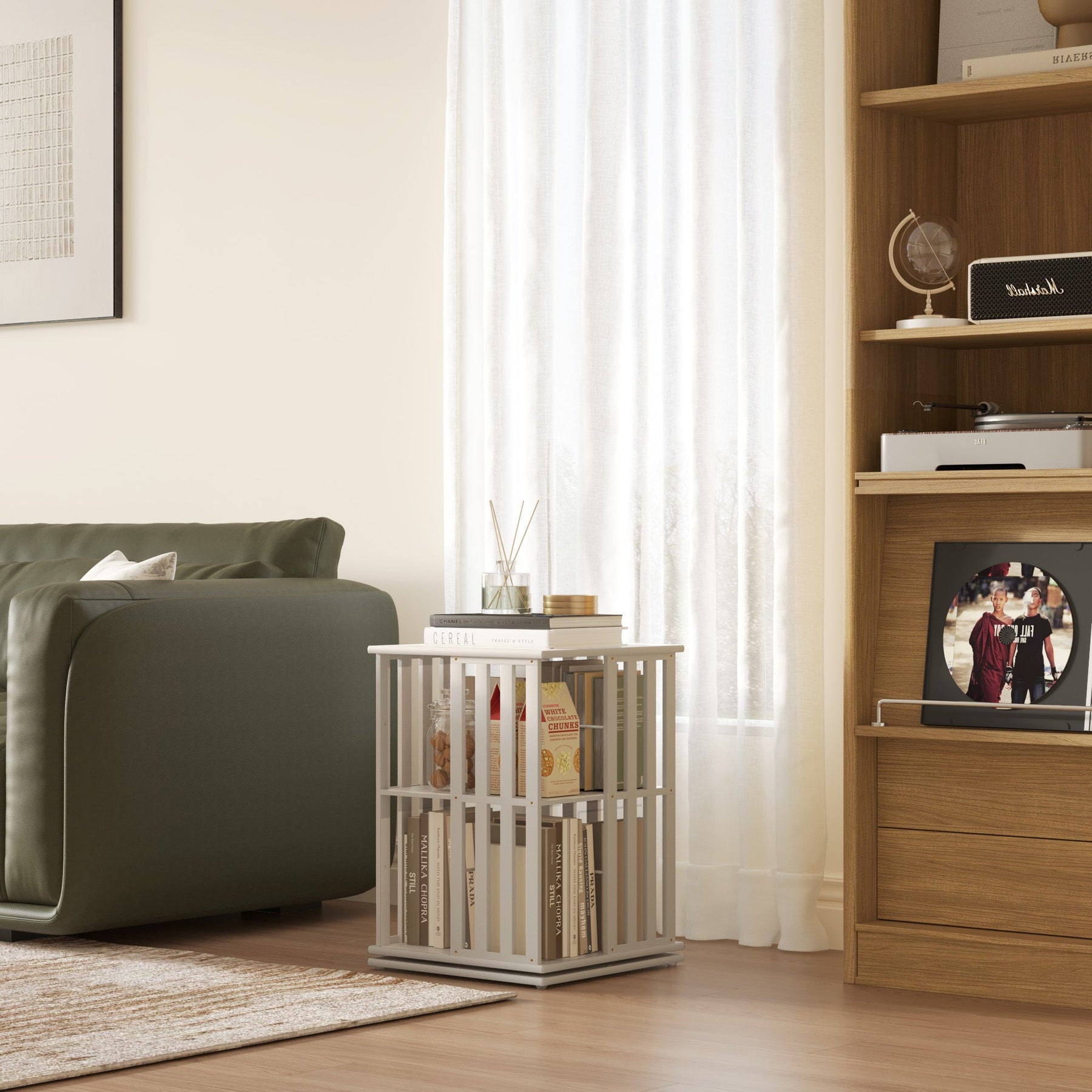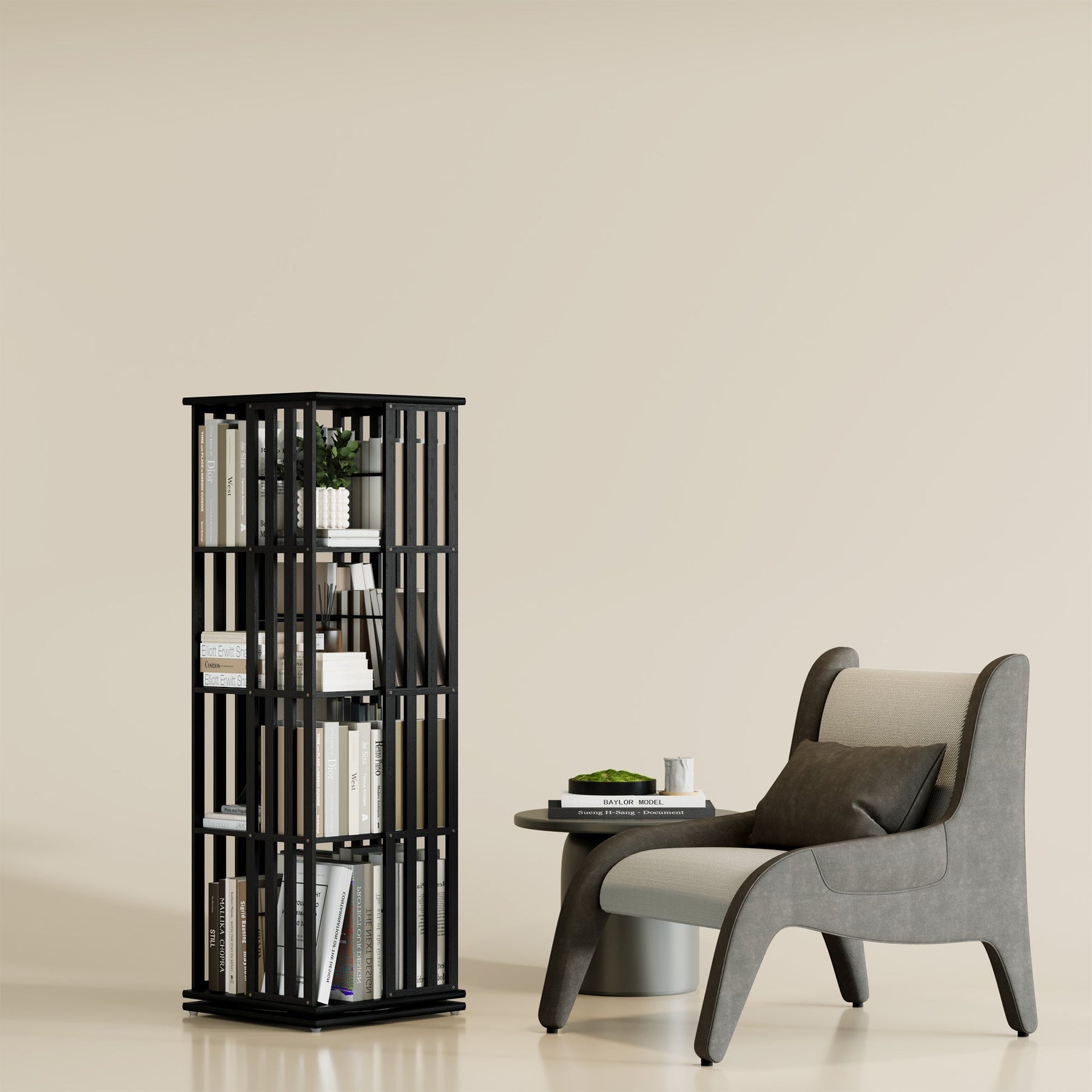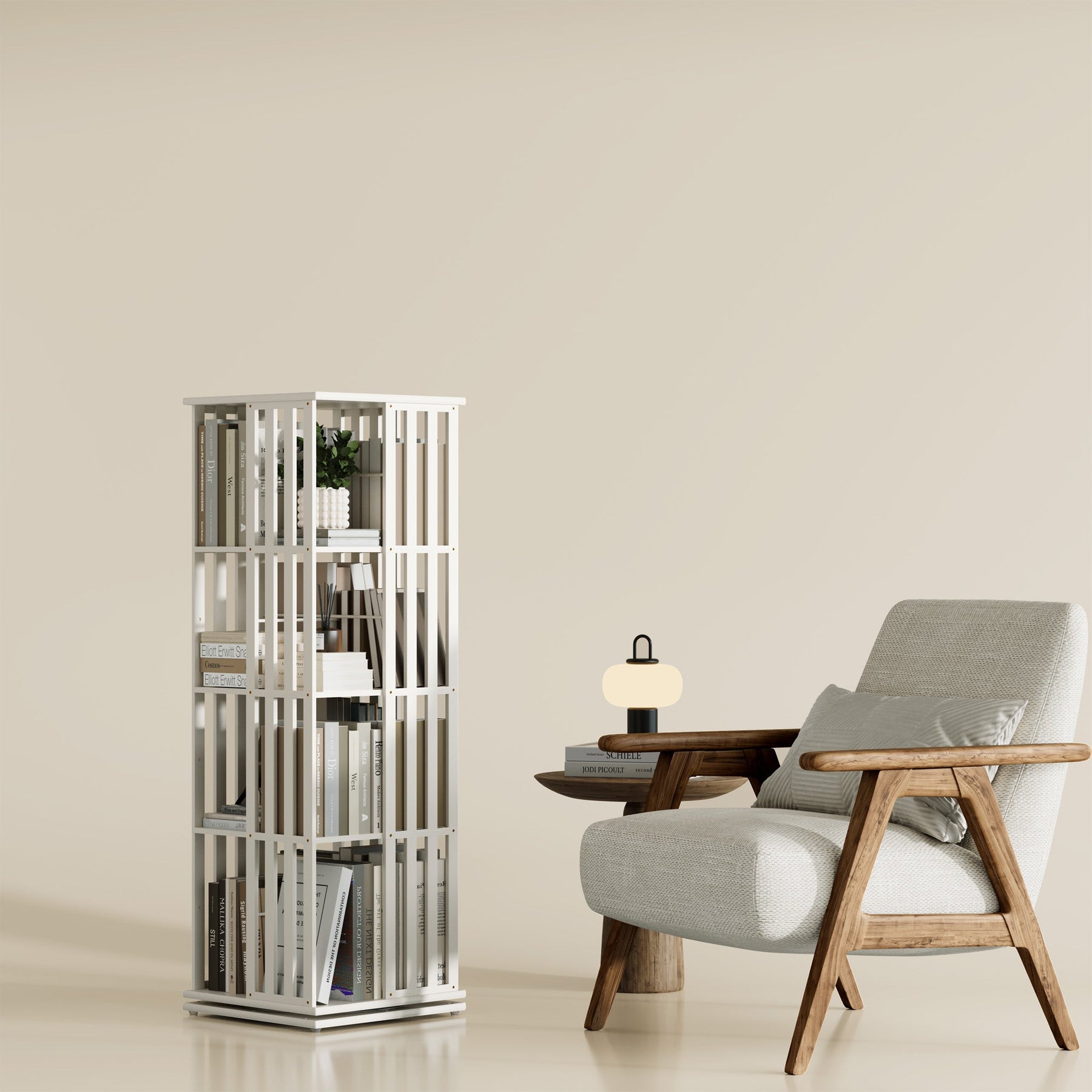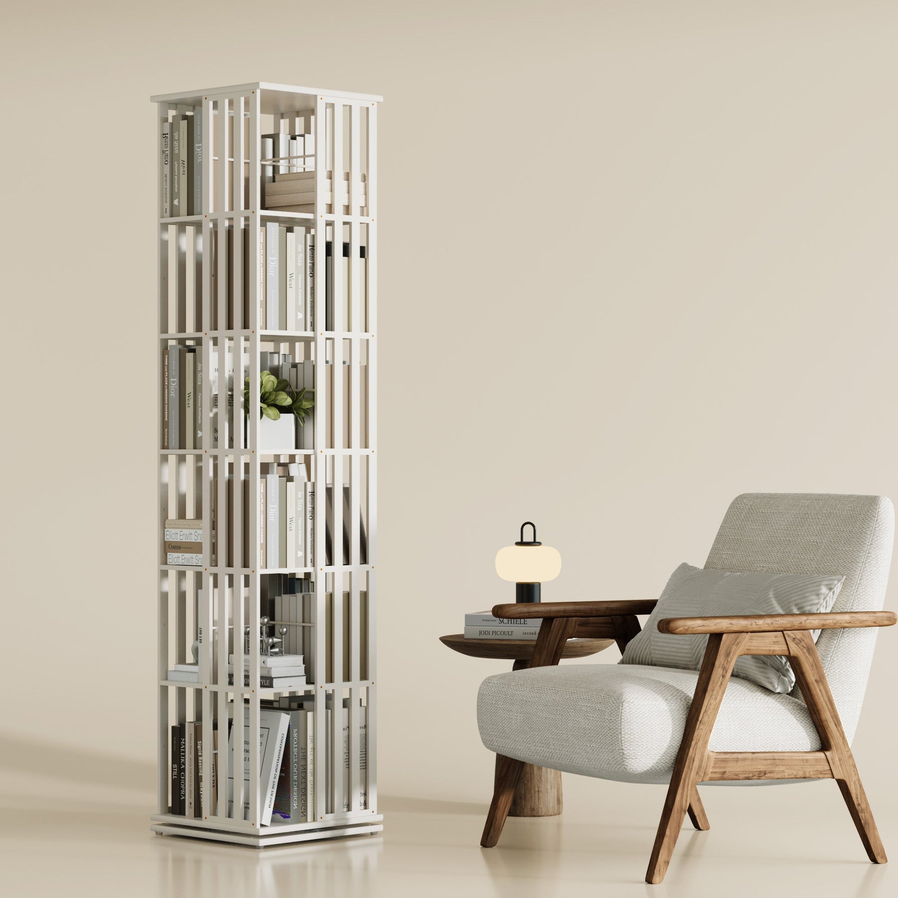 Esta estante com padrão vazado em malha vertical oferece uma plataforma adicional para organizar os seus livros. Esta estante possui uma base rotativa a 360° na parte inferior, permitindo-lhe escolher o seu livro preferido com mais conveniência.