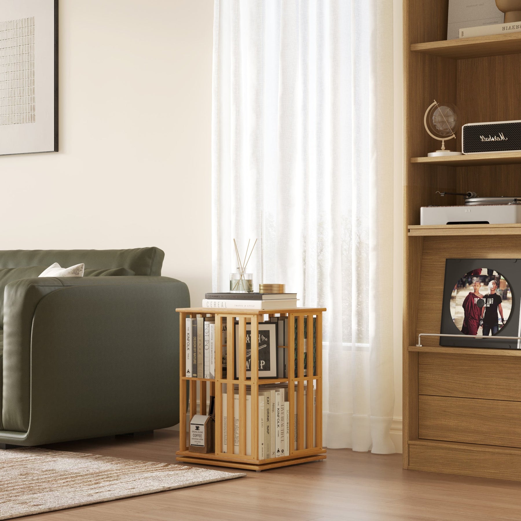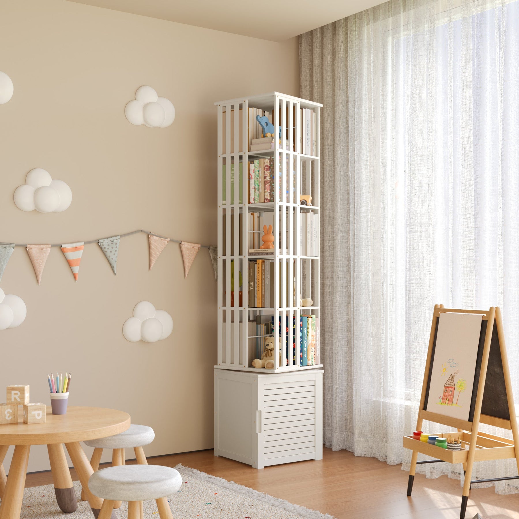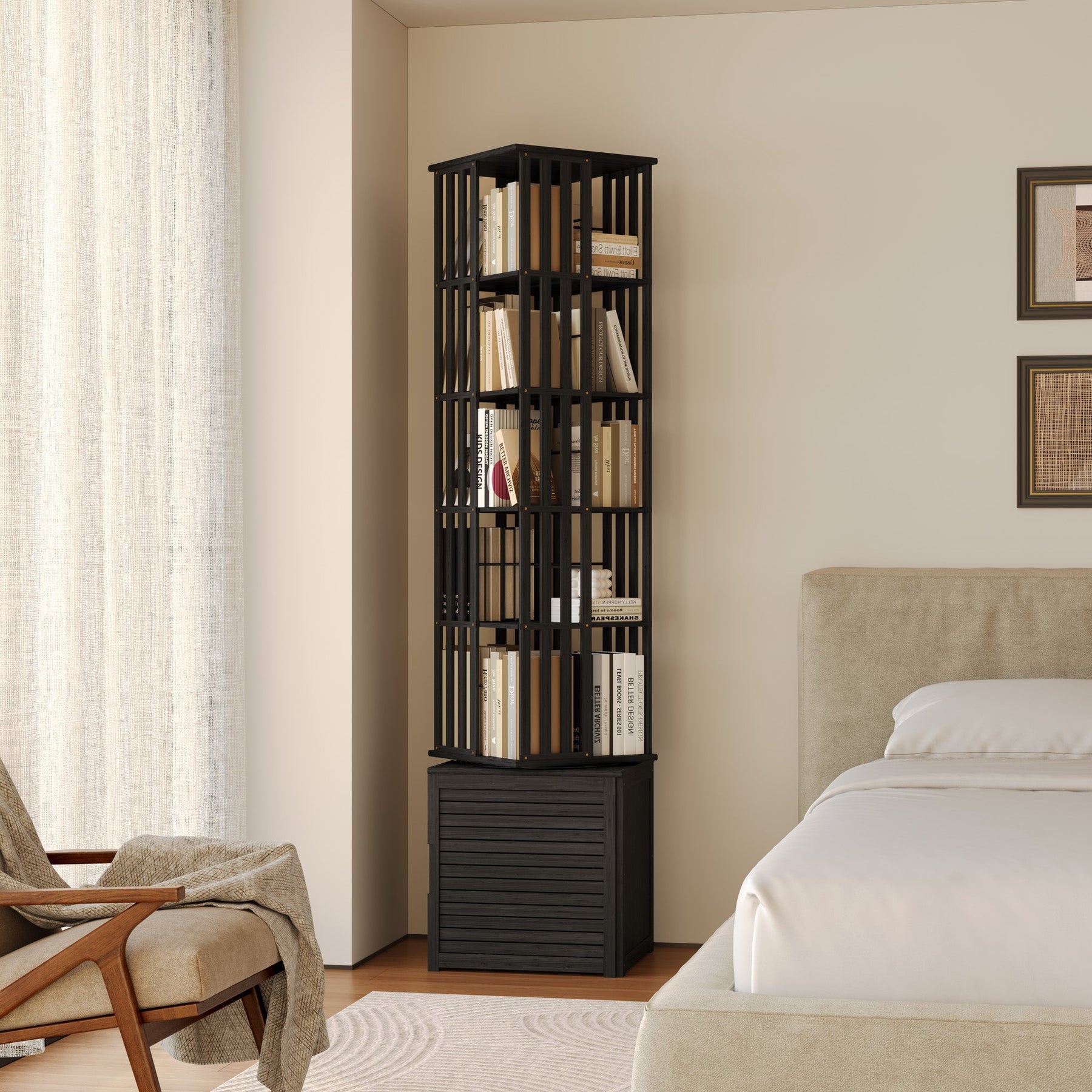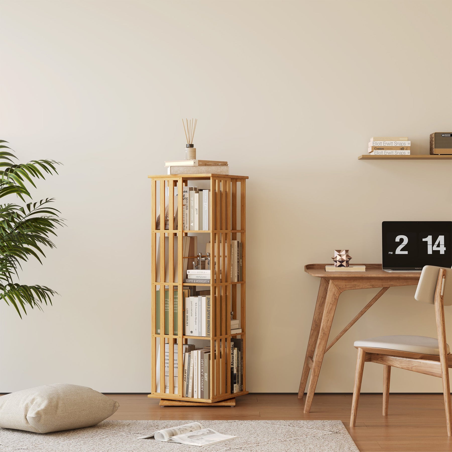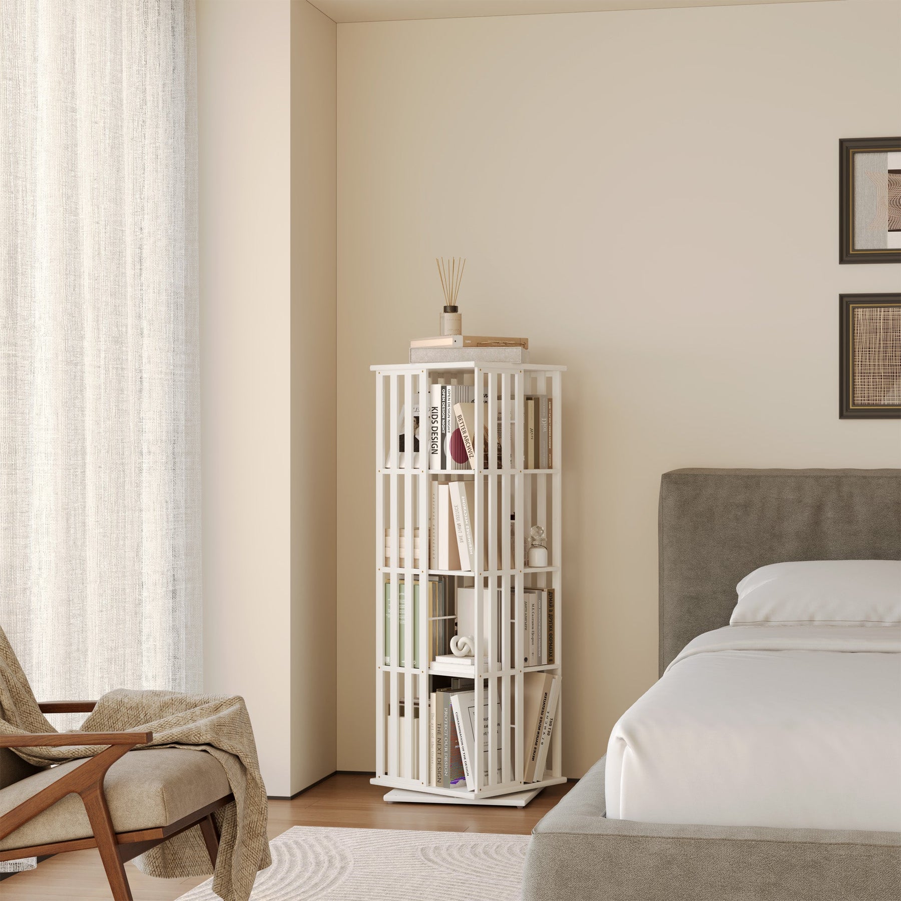 Esta estante com padrão vazado em malha vertical oferece uma plataforma adicional para organizar os seus livros. Esta estante possui uma base rotativa a 360° na parte inferior, permitindo-lhe escolher o seu livro preferido com mais conveniência.