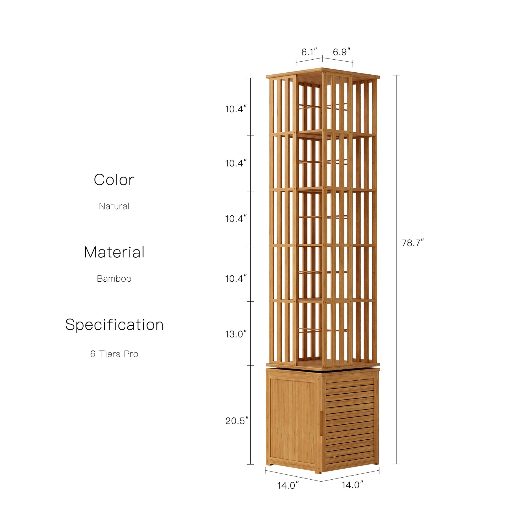 Esta estante com padrão vazado vertical oferece uma plataforma adicional para guardar livros e objetos. A base giratória de 360° com rodas facilita a escolha e o acesso a qualquer compartimento. A versão Pro de 6 prateleiras maximiza a arrumação num espaço compacto, com um design funcional e natural que combina com qualquer ambiente.