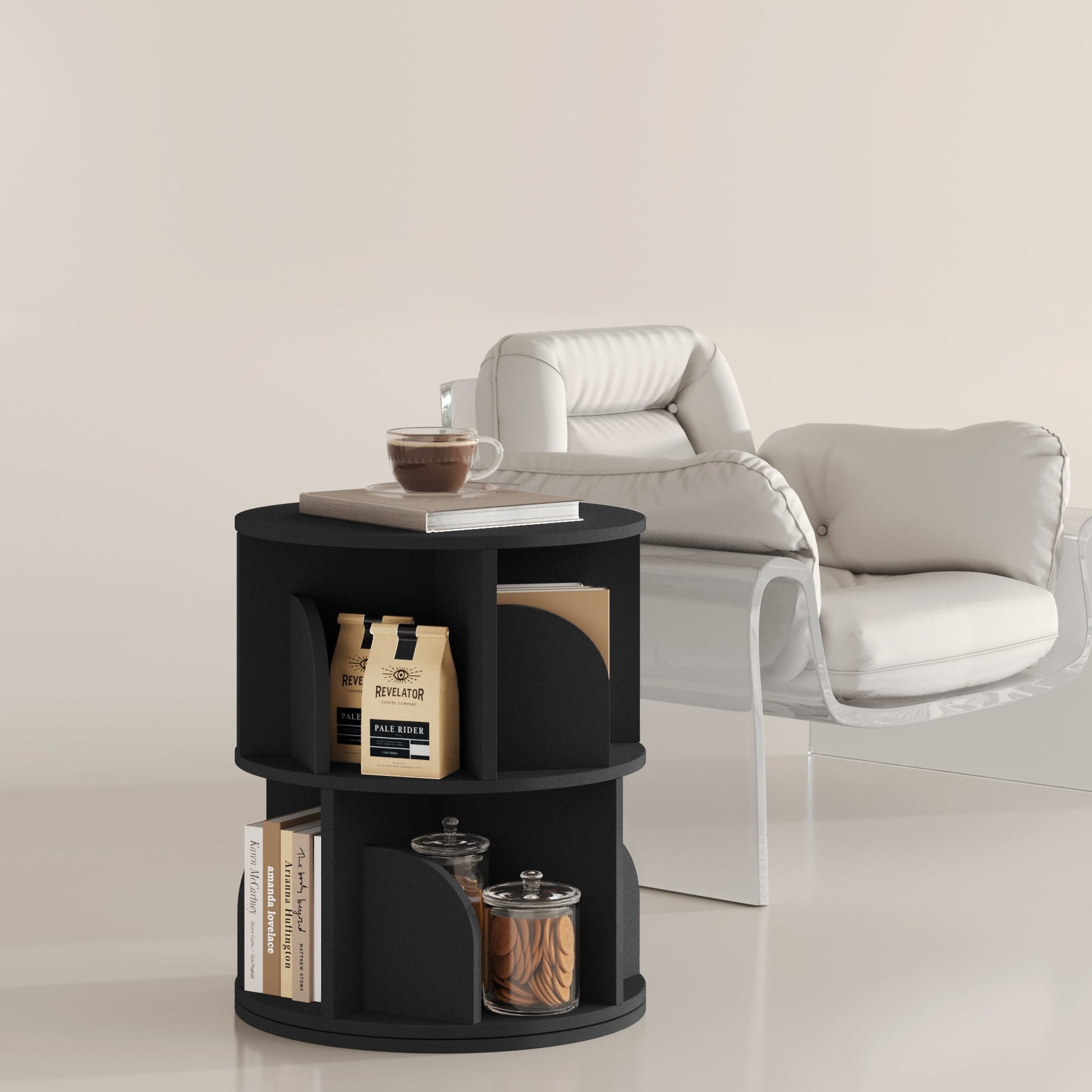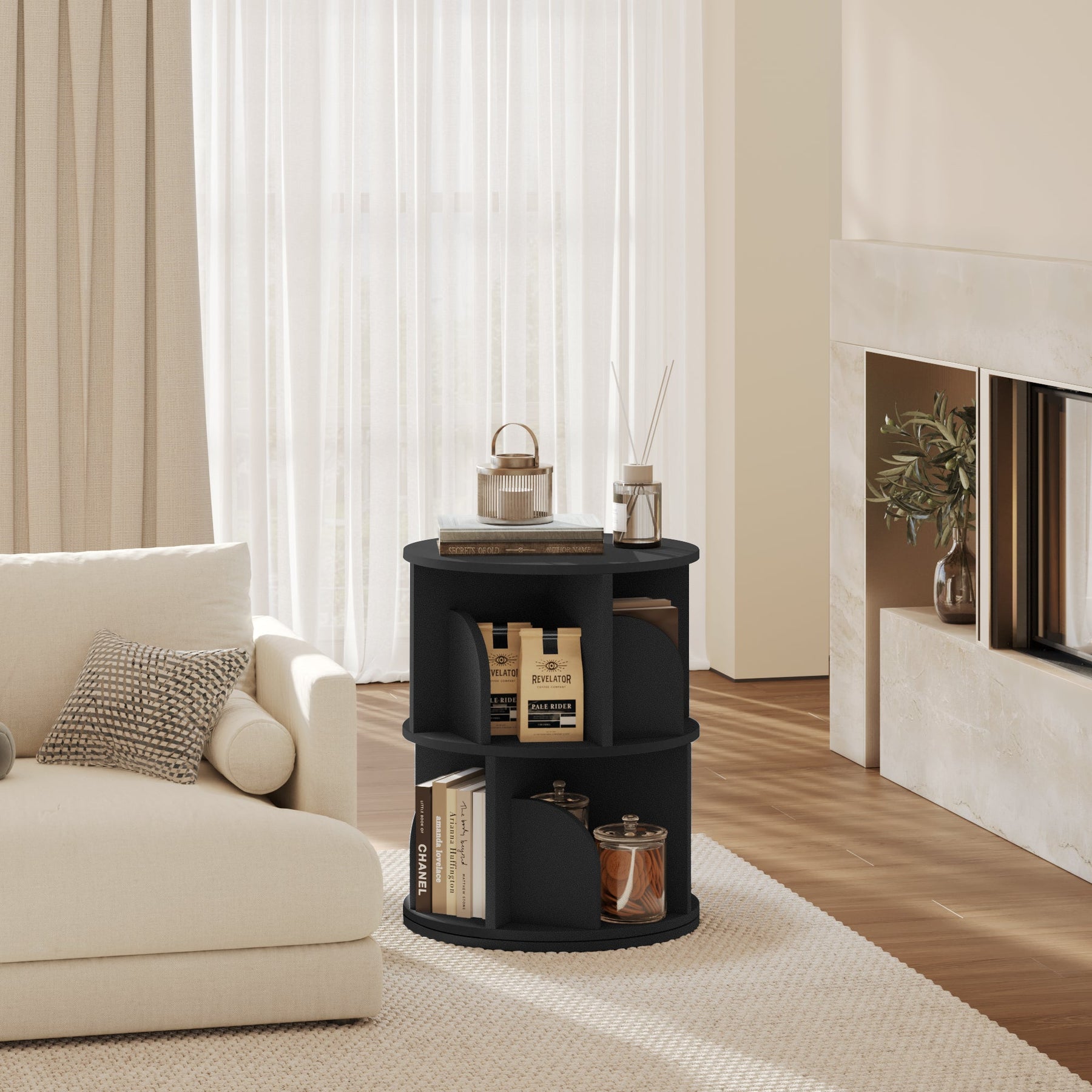 Esta estante giratória a 360° foi concebida com o minimalismo moderno e funcionalidade em mente.