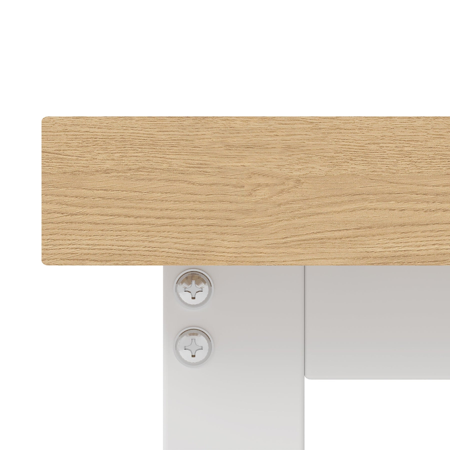 Esta secretária de 120 cm e 155 cm apresenta linhas modernas, acabamento suave em madeira natural e uma superfície generosa que se adapta facilmente a qualquer escritório em casa, quarto ou canto de estudo.