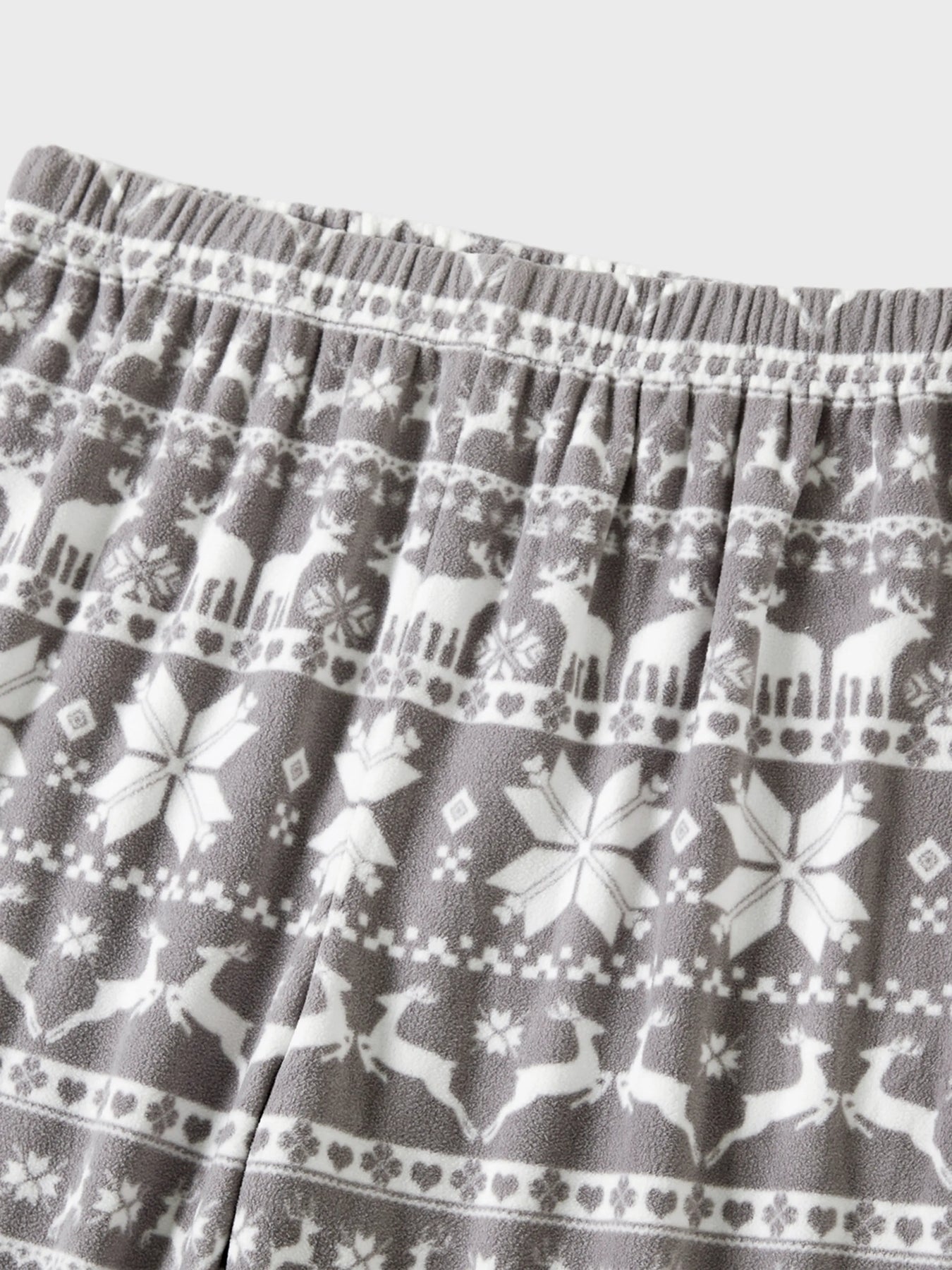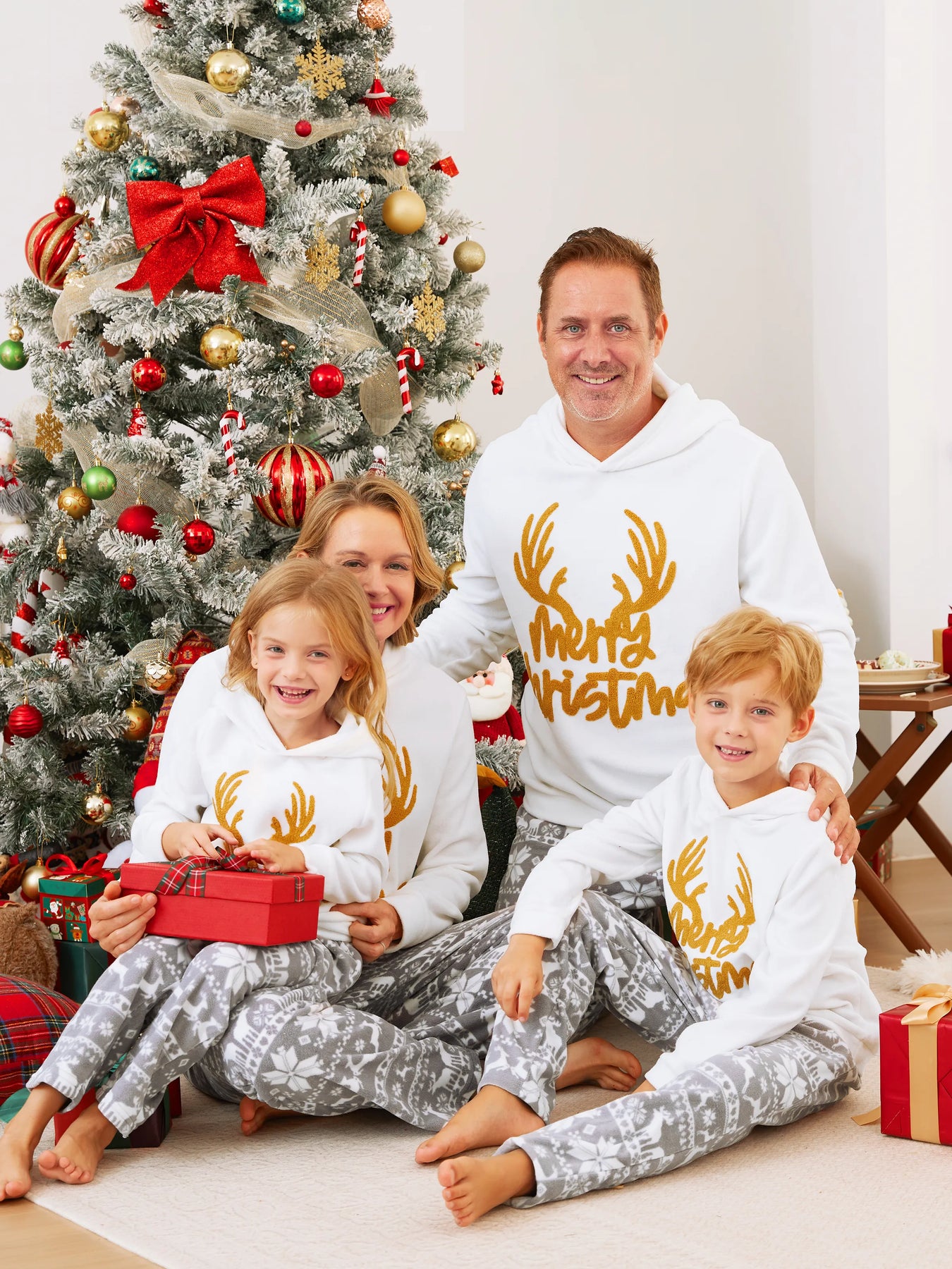 Celebre o Natal em grande estilo com este adorável conjunto de pijamas familiares coordenados, featuring renas, flocos de neve, corações e padrões geométricos bordados.