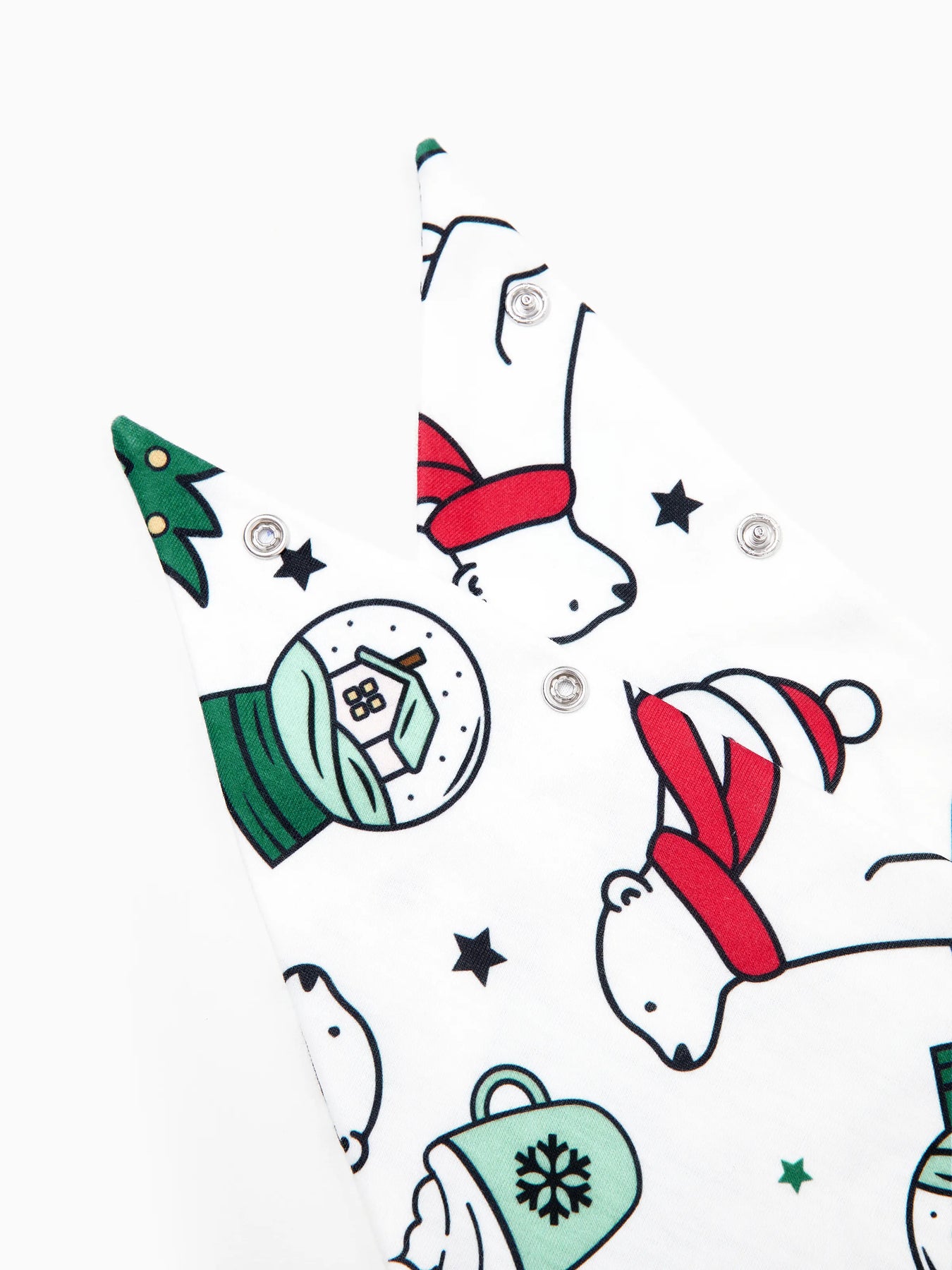 Celebre o Natal com a sua família usando estes pijamas combinados, com um estampado festivo de árvore de Natal, globo de neve, boneco de neve e urso polar.