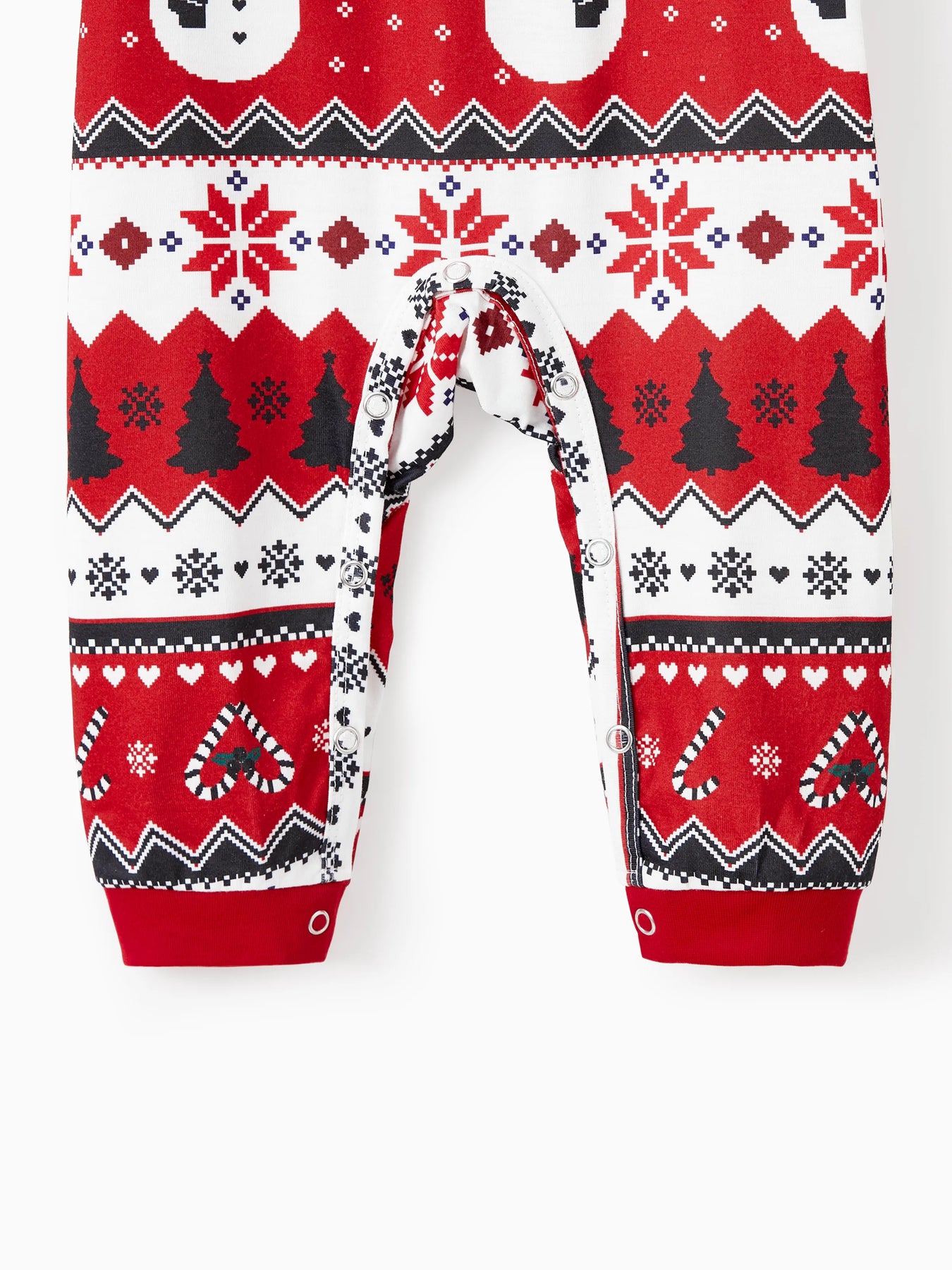 Desfrute de momentos acolhedores e confortáveis em família com os nossos pijamas coordenados em vermelho e preto, adornados com adoráveis estampas de flocos de neve e bonecos de neve.
