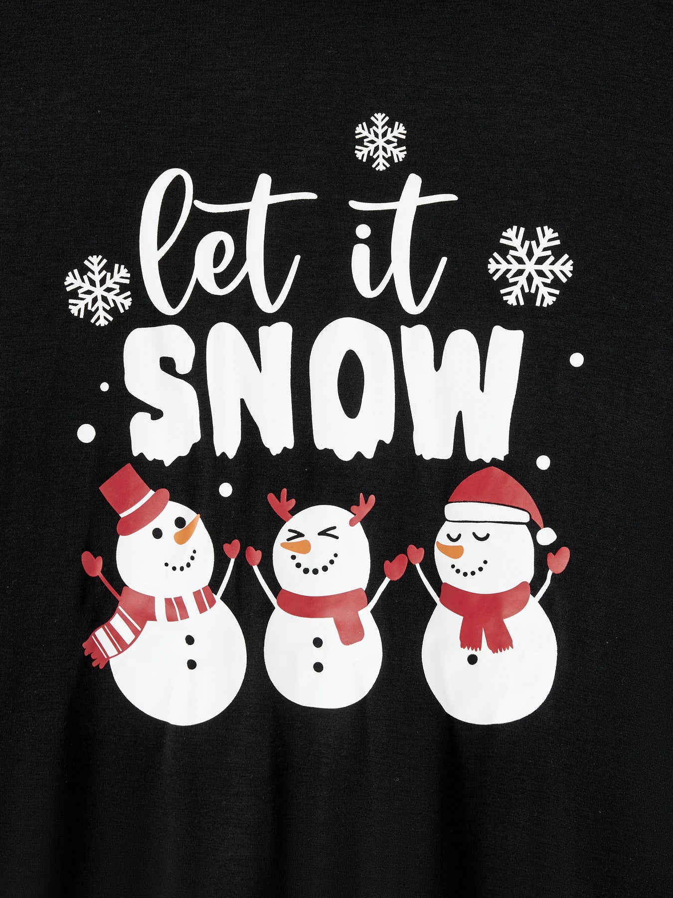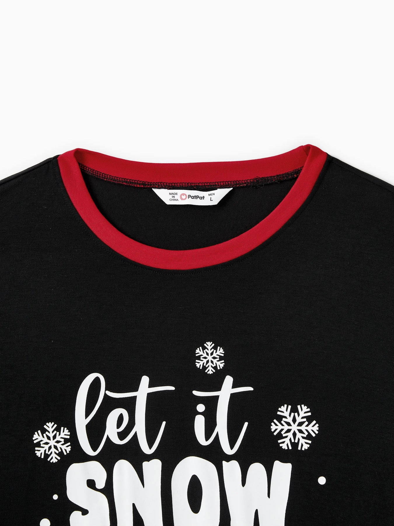Conjunto de Pijamas de Natal para Famílias com Impressão de Boneco de Neve – PJs de Manga Longa com Meias de Natal – Preto