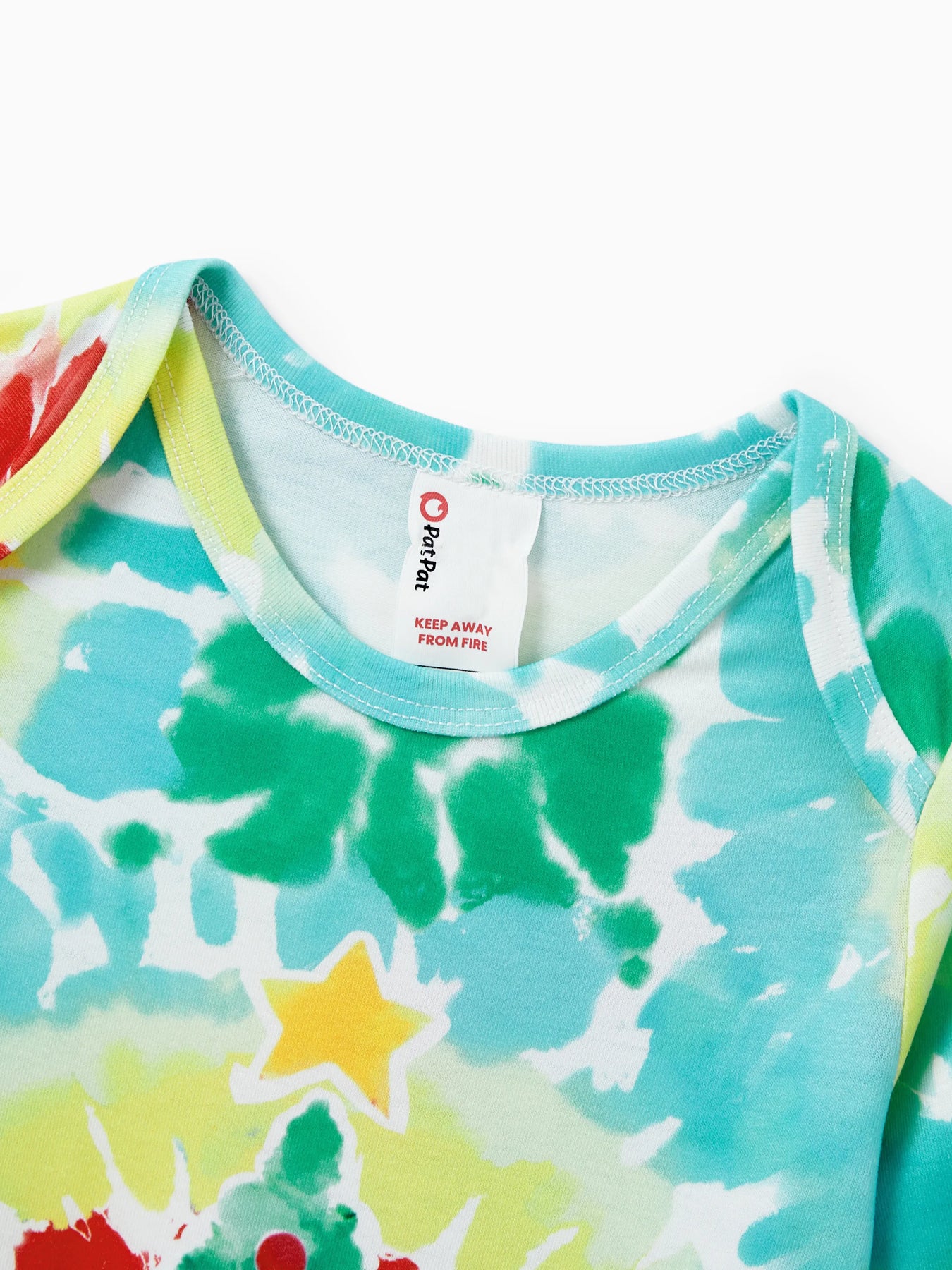Conjunto de Pijamas de Natal para a Família em Coordenação com Estampa Colorida de Árvore de Natal e Meias de Natal Multicoloridas