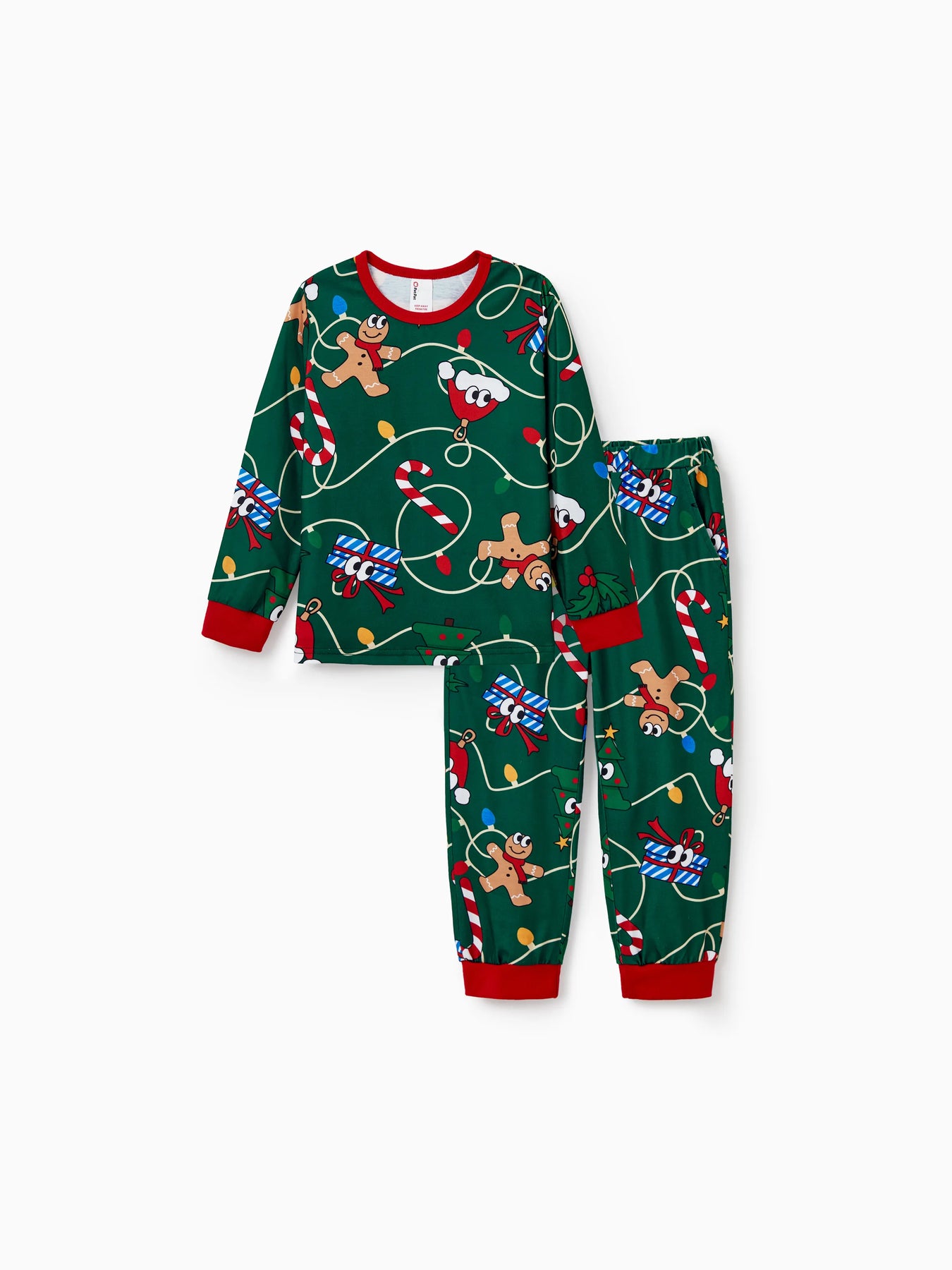 • Estilo: Pijamas familiares confortáveis com tema de Gengibre e Árvore de Natal.