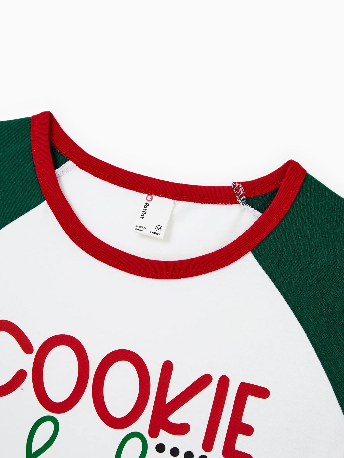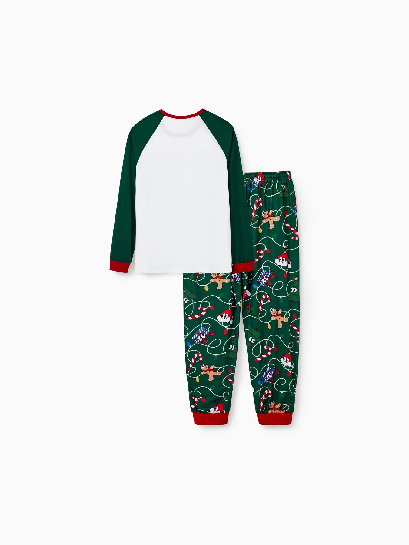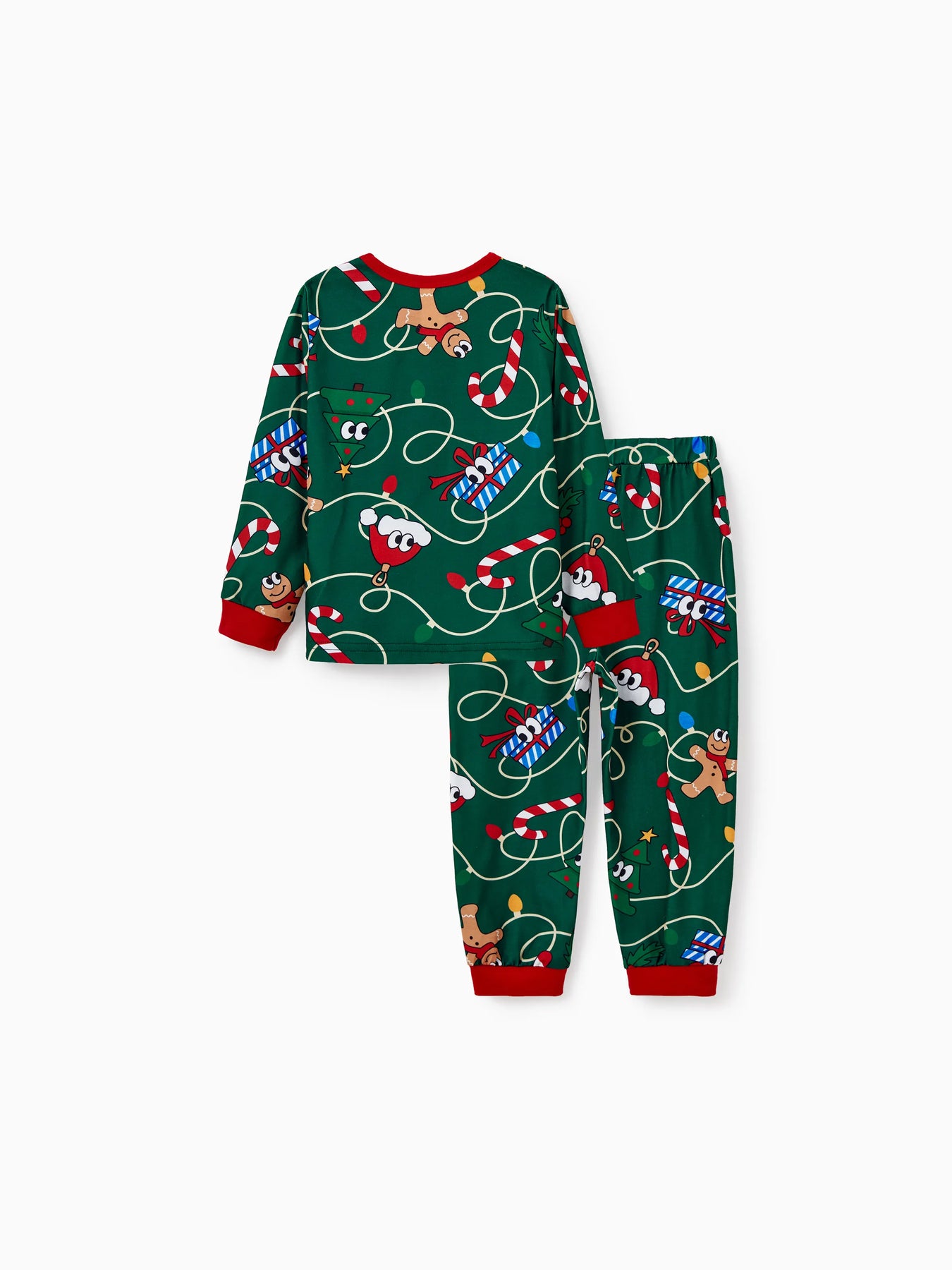 Conjunto de Pijamas em Família para o Natal em Verde e Branco com Gengibre e Árvore de Natal, incluindo Meias de Natal Verde Escuro.