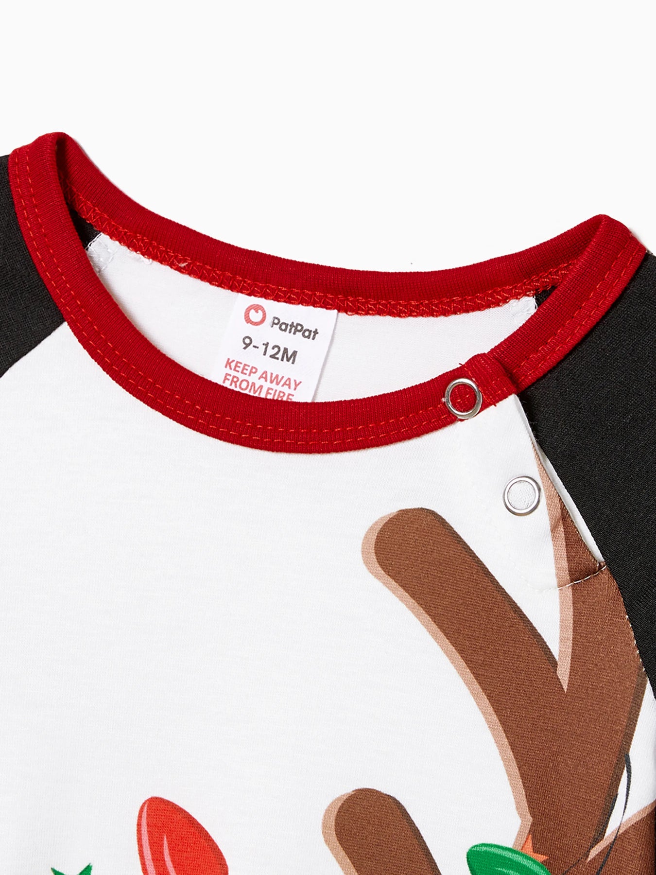 Conjuntos de Pijamas para a Família com Estampa de Renas de Natal e Meias de Natal Pretas