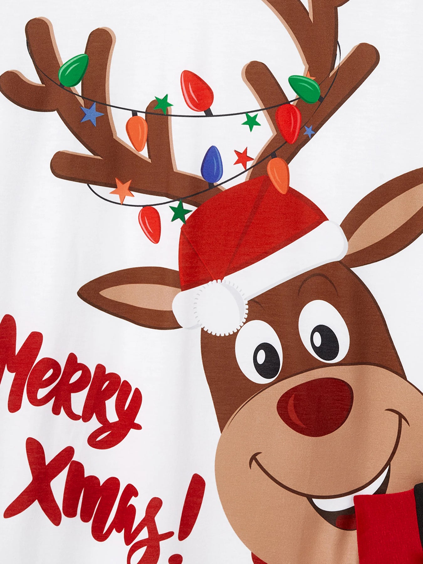 Entre no espírito festivo com o nosso conjunto de pijamas de família com estampas de Rena de Natal e Feliz Natal, perfeito para noites acolhedoras em casa.