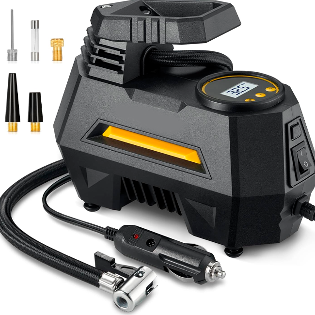 Bomba de ar portátil para pneus (compressor 12V) — potente e compacta