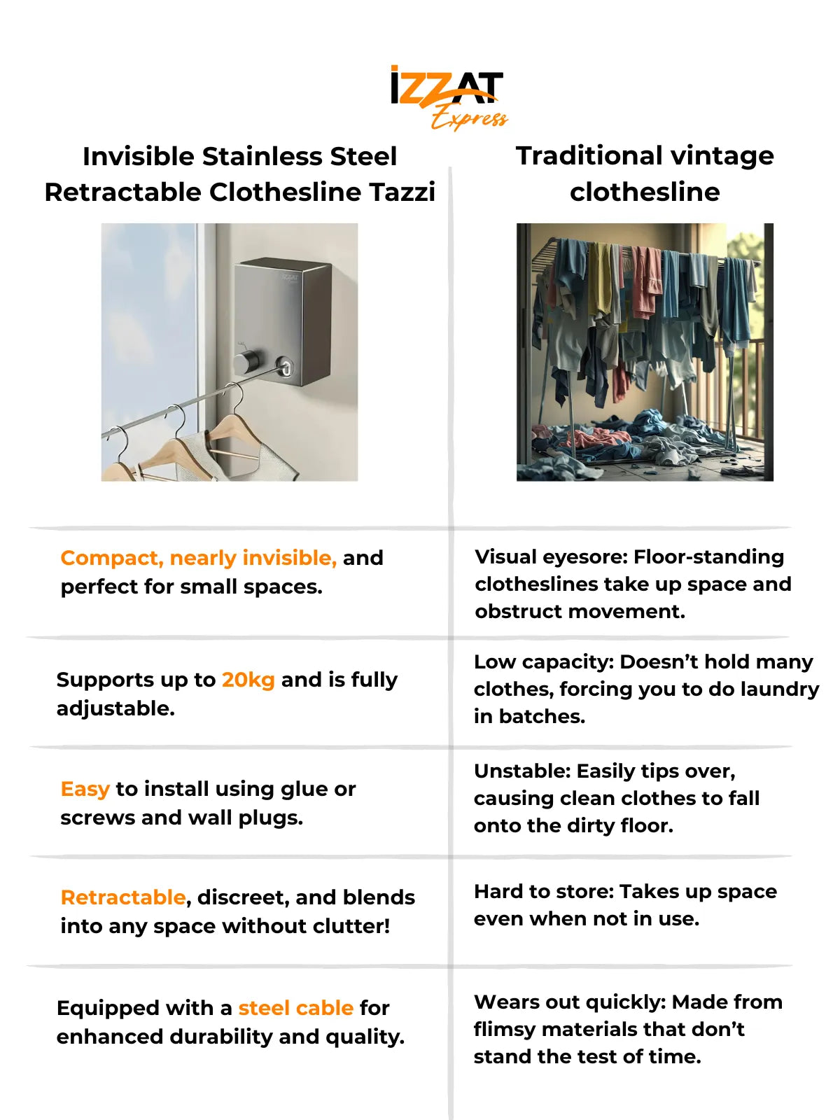 Pare de sofrer com varais gigantes, agora com o moderno do Varal Invisível Retrátil de Aço inox Resistente - Tazzi é discreto é perfeito lugares pequenos.